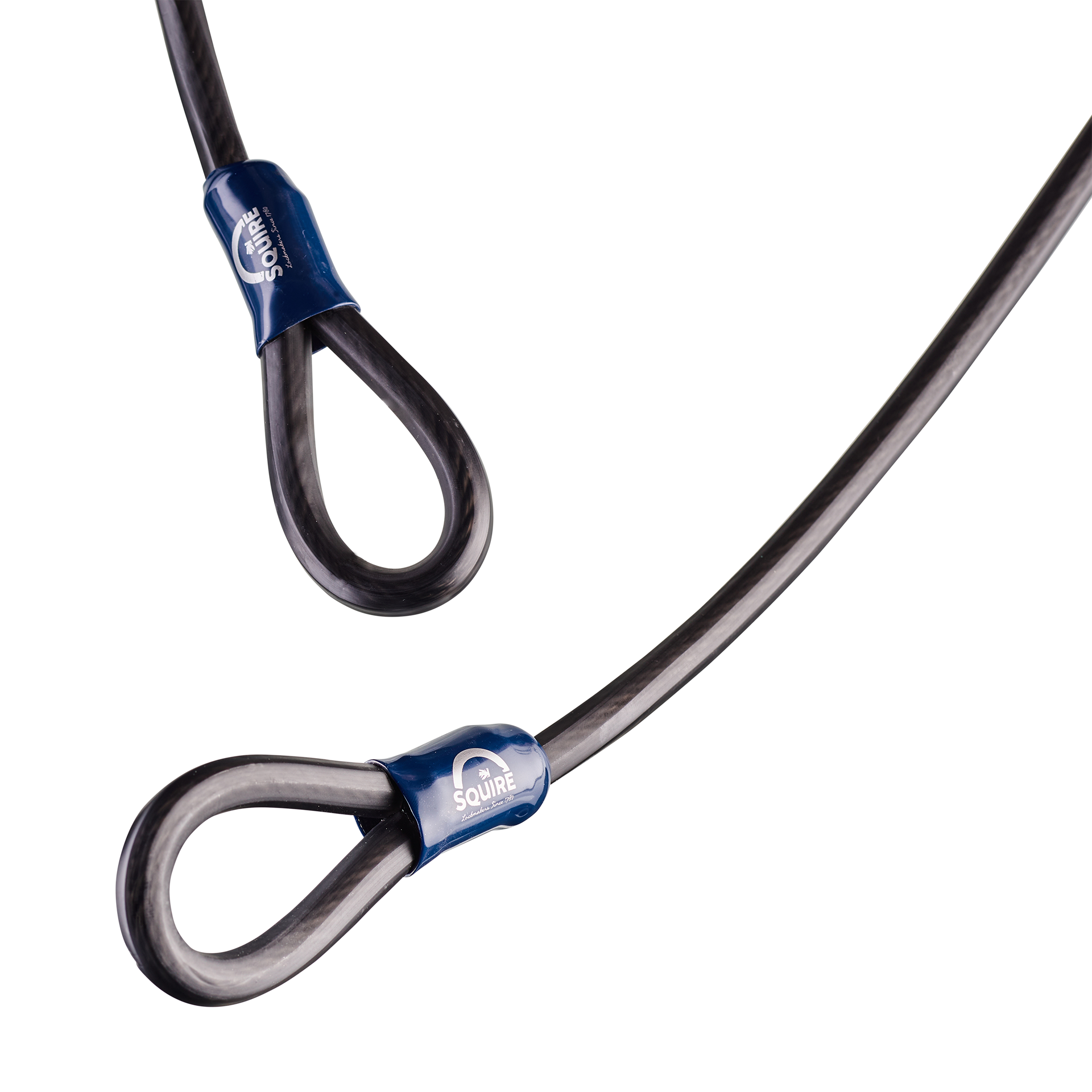 The Squire 10c heavy-duty security cable provides an additional layer of protection when securing your bike wheels, accessories or valuable garden equipment. 1800mm long and constructed from tough 10mm diameter multi-strand steel, this security cable with convenient dual looped ends is designed for maximum locking length. The weatherproof, PVC cover protects the steel cable and also forms a durable anti-scratch barrier. The Squire 10c security cable is designed to be used with a suitable Squire D-lock or padlock to enable the cable ends to be securely locked together.