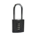 Featuring a solid zinc die cast body, this high security combination padlock offers excellent saw resistance thanks to its hardened steel shackle. Its 4 wheel combination mechanism removes the need to carry around bothersome keys. This high-security combi lock (also known as a padlock with code or number padlock) is perfect for use on sheds, lockers, suitcases and toolboxes. The strength and ease of use of these coded padlocks make them perfect for your business too.