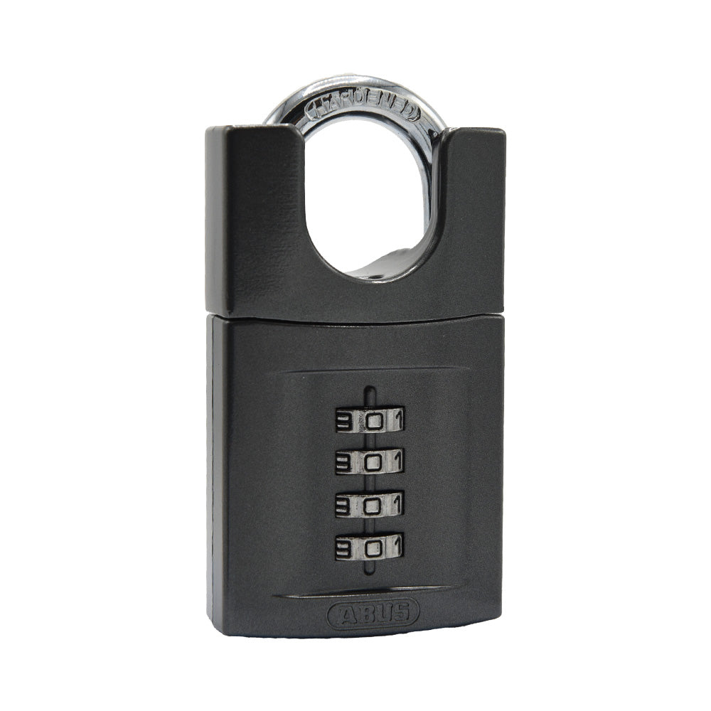 Featuring a solid zinc die cast body this durable padlock with code offers excellent saw resistance thanks to its hardened steel shackle. Its 4 wheel combination mechanism removes the need to carry around bothersome keys. That makes this versatile and portable combi lock perfect for securing lockers, toolboxes, sheds and suitcases. This coded padlock is also ideal for bulk purchasing.