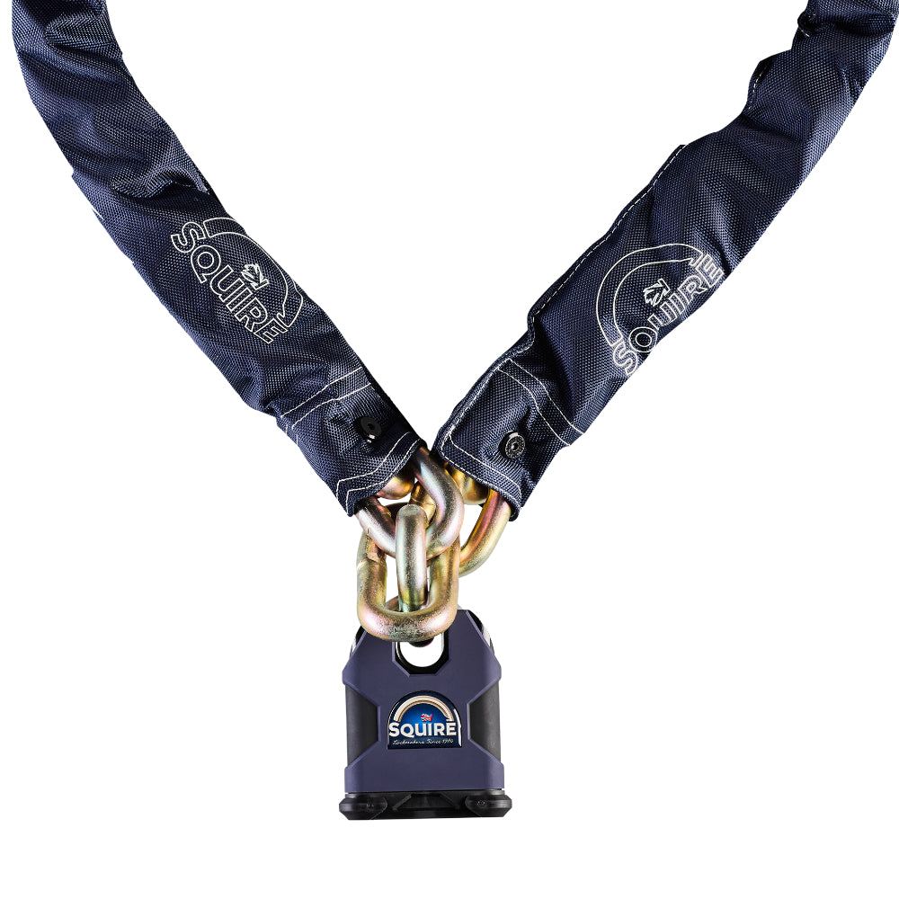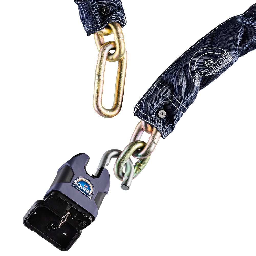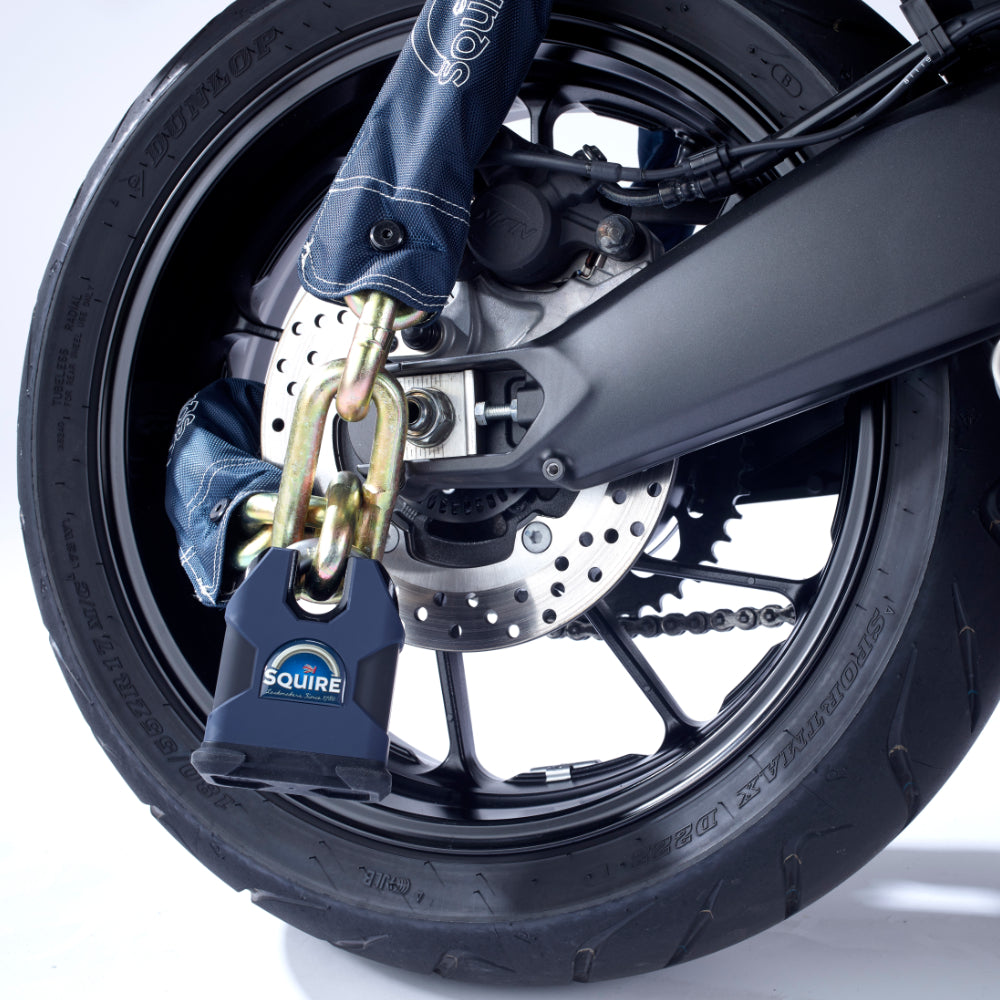 Upgrade your motorbike's home defences with the Samson, a Sold Secure Motorcycle Gold padlock and chain set featuring the Squire Stronghold SS80CS padlock with a 16mm hardened alloy steel chain - it’s extremely resistant to attacks, ensuring total peace of mind.