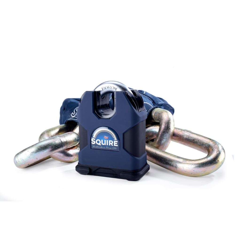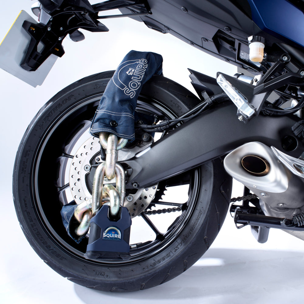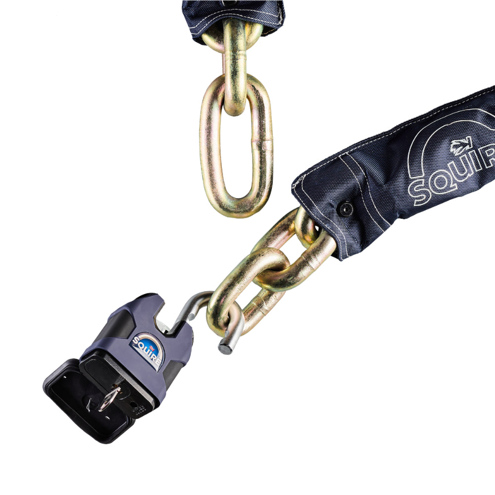 Featuring the Squire Stronghold SS80CS padlock - a 80mm solid hardened steel padlock with a 22mm Diameter hardened alloy steel chain provides robust defence against unauthorised attacks. With a 10+ security rating and Sold Secure Powered Cycle Diamond approval, this is built for ultimate protection.
