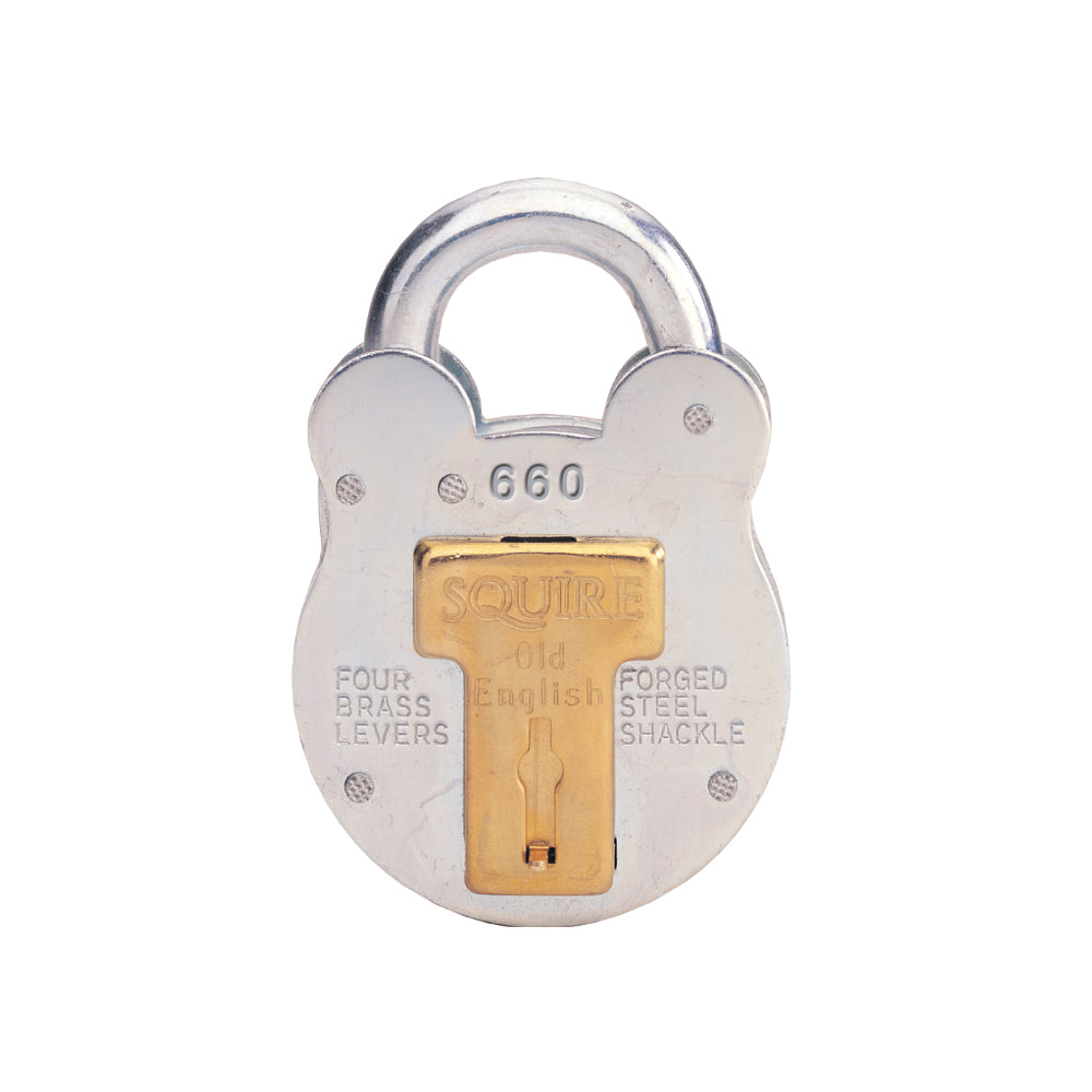 The Squire 660 Old English Padlock brings classic style to modern security. This heritage padlock boasts a 60mm solid steel body, and a vintage look that’s as tough as it is timeless.