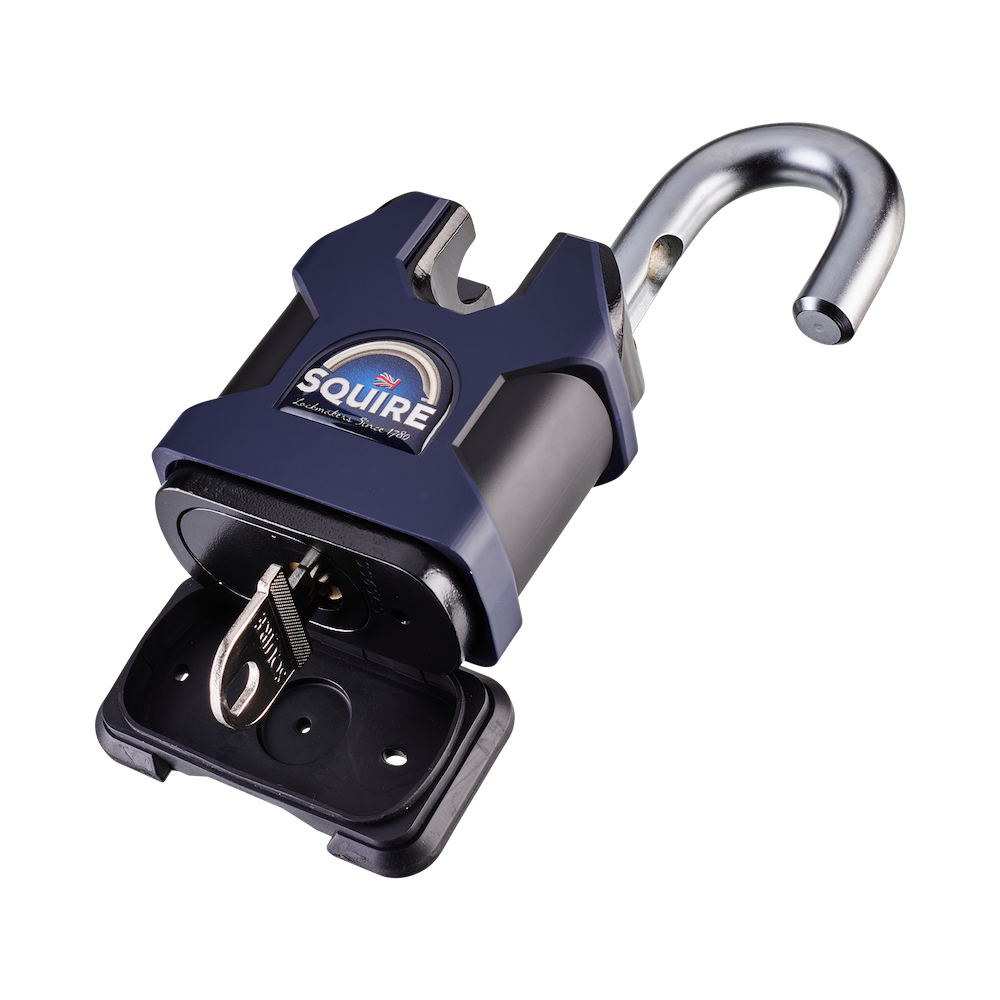 The Squire SS65CS closed shackle high security padlock offers maximum security, quality and performance. The Squire SS65CS padlock is a CEN 6 graded insurance padlock. The Squire SS65CS padlock comes with a solid hardened steel lock body and offers high corrosion resistance - the padlock has passed over 400 hours salt spray test. This heavy duty padlock comes with a closed shackle, so the shackle is protected against attack. This high security padlock is suitable for harsh environments. The Squire SS65CS padlock uses a 6 pin cylinder which offers over 250,000 key differs. All Squire padlocks come with a 10 year guarantee.