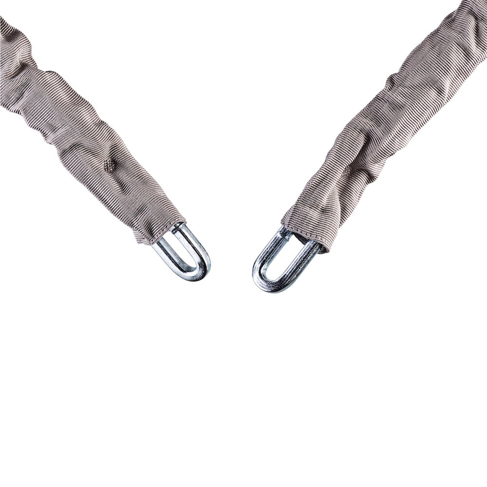 The Squire X3 steel chain offers a medium level of security without the extra weight of a traditional chain. The black fabric sleeve protects against any potential damage to chrome or paintwork making it the ideal motorbike security chain. This X3 Squire chain is also weatherproof, perfect to protect outdoor areas or valuables, including motorbikes, garden furniture, vehicles and more.