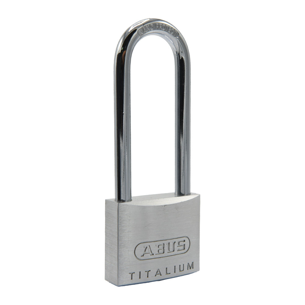 The Abus 64TI50HB80 Titalium padlock is an incredibly strong and durable long shackle padlock. Its tough titalium body and hardened steel shackle make it incredibly durable, especially in outdoor conditions. The Abus long shackle padlock is also resistant to corrosion and all types of weather, making it perfect as a long shackle bike lock, or for using on your shed or garden gate.