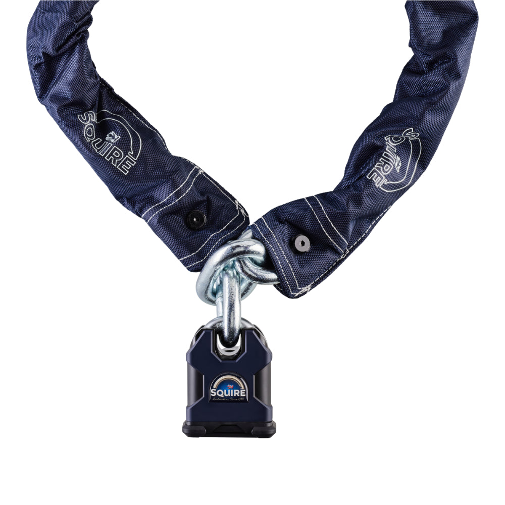 The Squire SS65CS padlock and Squire TC14/4 14mm x 1200mm security chain offers excellent protection with its solid hardened steel closed shackle padlock and hardened steel security chain. This set sold together is Sold Secure Motorcycle Gold level. The Squire SS65CS is a CEN grade 6 padlock due to its closed shackle design. It also has a 10-year protection guarantee for ultimate peace of mind!